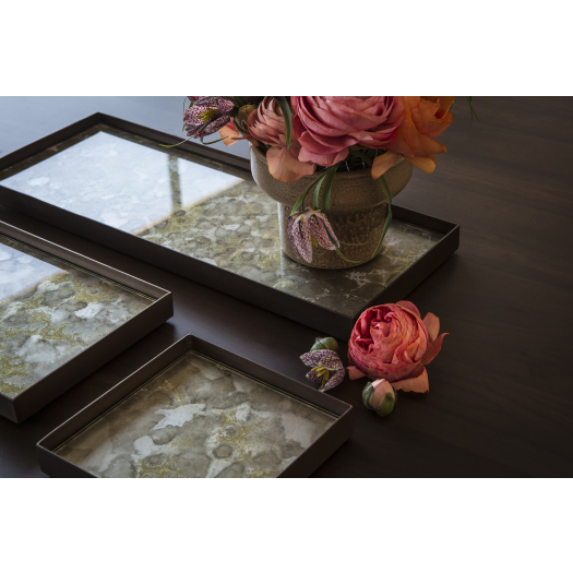Le plateau miroir Notre Monde est un plateau fabriqué avec un miroir vieilli particulièrement élégant.