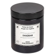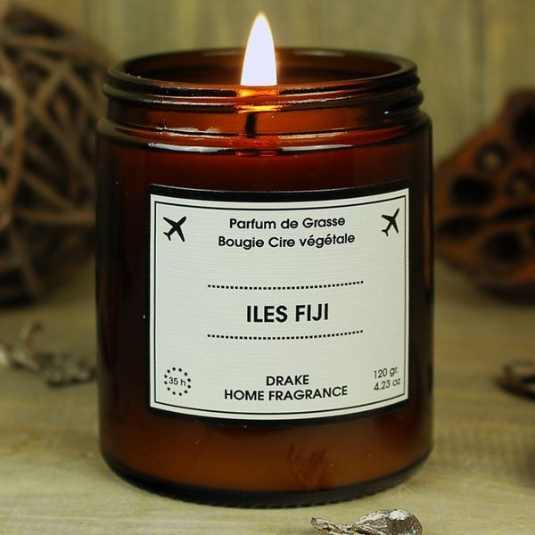 De la cire végétale, des parfums naturels de Grasse et un pot en verre coloré.