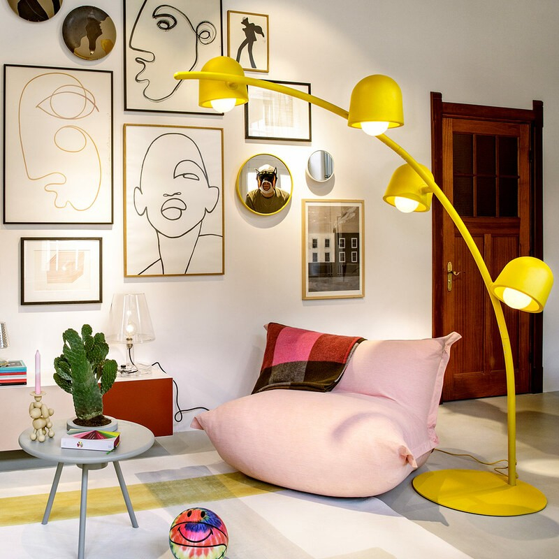Fatboy propose une lampe en acier arquée au look des 70's dont les spots sont orientables!