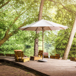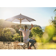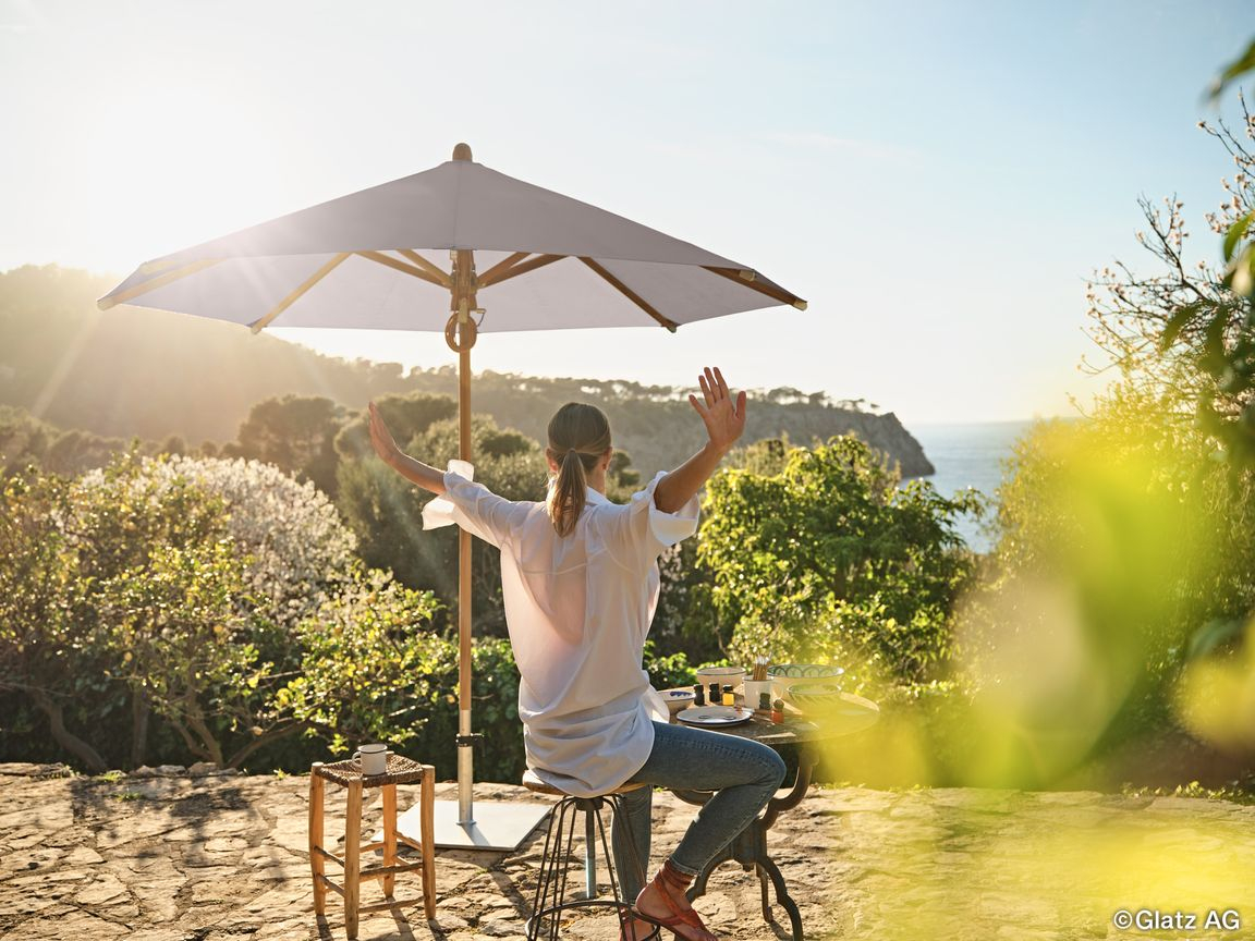 Découvrez Teakwood, l'élégant chef-d'œuvre en bois noble. Avec son design esthétique et précieux, ce parasol en teck naturel est la Rolls-Royce des parasols en bois. Grâce à sa double poulie et ses angles de toile renforcés avec du cuir haut de gamme, vous pourrez profiter rapidement et facilement d'une ombre raffinée et durable.