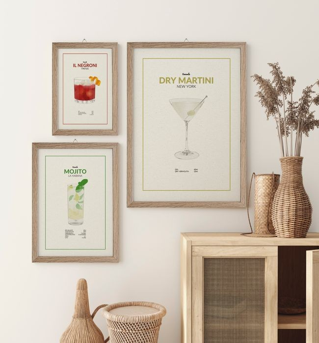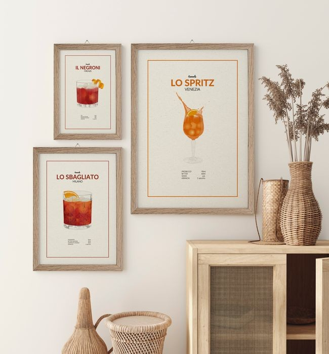 Apportez une touche deco à votre intérieur avec ces affiches de cocktails traditionnels de chaque pays : le Spritz, le Dry Martini, le Gin Tonic, le Mojito, lo Sbagliato, ...
