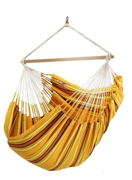 La ligne Currambera est adaptée à toutes les exigences que l'on est en droit d'attendre d'un bon hamac chaise : une suspension robuste et simple, un fil de coton particulièrement résistant et des couleurs chaudes et lavables.