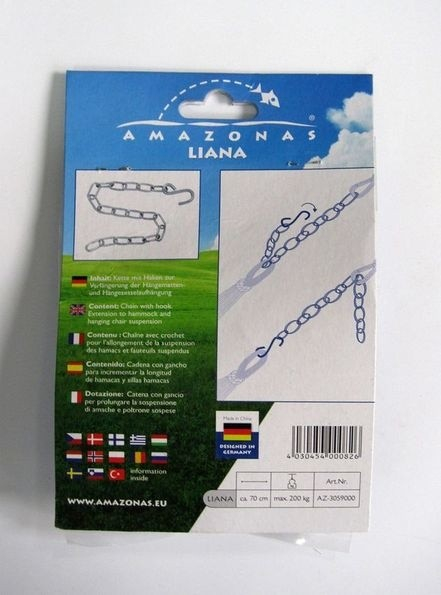 Il s‘agit d‘une chaîne résistante avec crochet permettant de prolonger, de façon esthétique, la suspension de votre hamac ou de votre fauteuil suspendu.