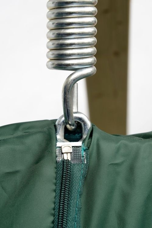 Une fermeture-éclair permet de la poser rapidement. Elle sera repliée en un tour de main.