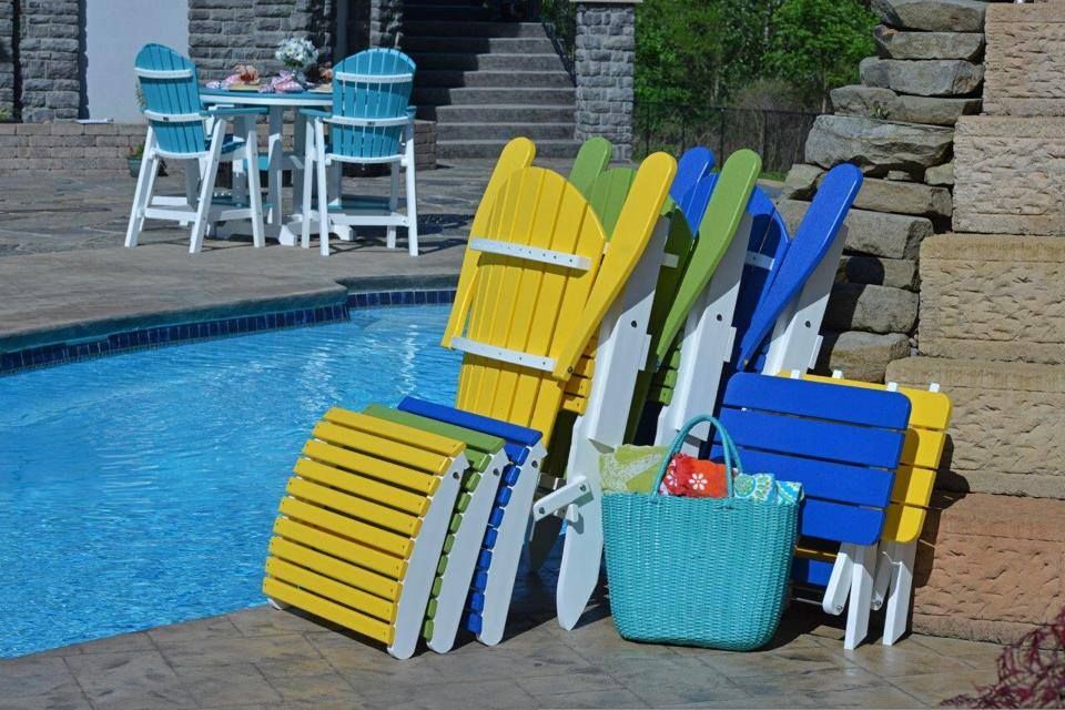 Les fauteuils Adirondack Berlin Gardens sont fabriqués à 95 % en plastique recyclé HDPE, issu notamment de bouteilles recyclées.