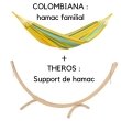 Ce set est composé d'un support de hamac en bois Theros et d'une toile de grande taille Colombiana : vous trouvez ci-dessous les caractéristiques de ces 2 éléments.