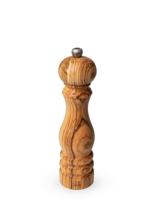 Entièrement fait de bois, le moulin à poivre Paris est doté d'un petit bouton de finition dorée permettant de régler la mouture de votre poivre. Un système breveté par la marque Peugeot.