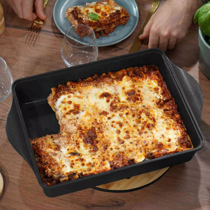 Un plat malin et extensible de Cookut, un plat au four innovant doté d'un séparateur. Ajustez facilement sa taille selon vos besoins pour préparer une variété de plats, des petits gratins aux grands gâteaux . Pratique, écologique et sans revêtement nocif, il passe du four à la table avec élégance.