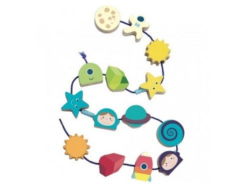 Apprenez à enfiler grâce à ces perles de l'espace et aidez bébé à développer sa dextérité.