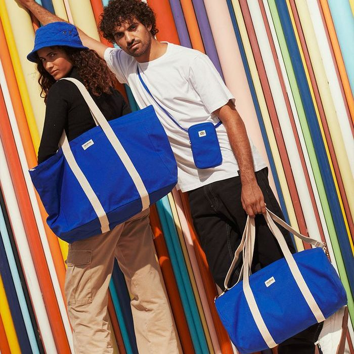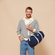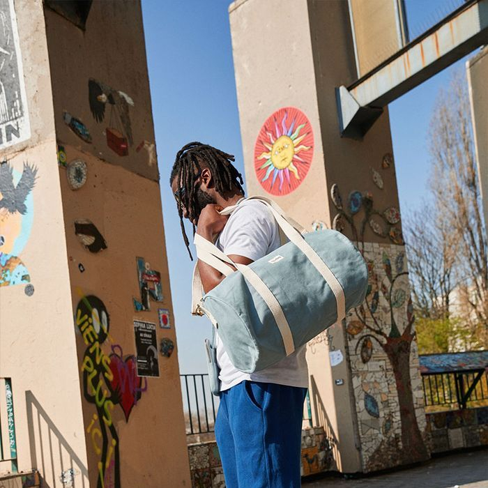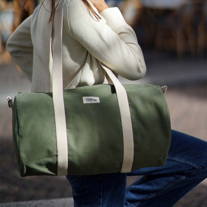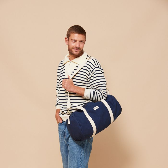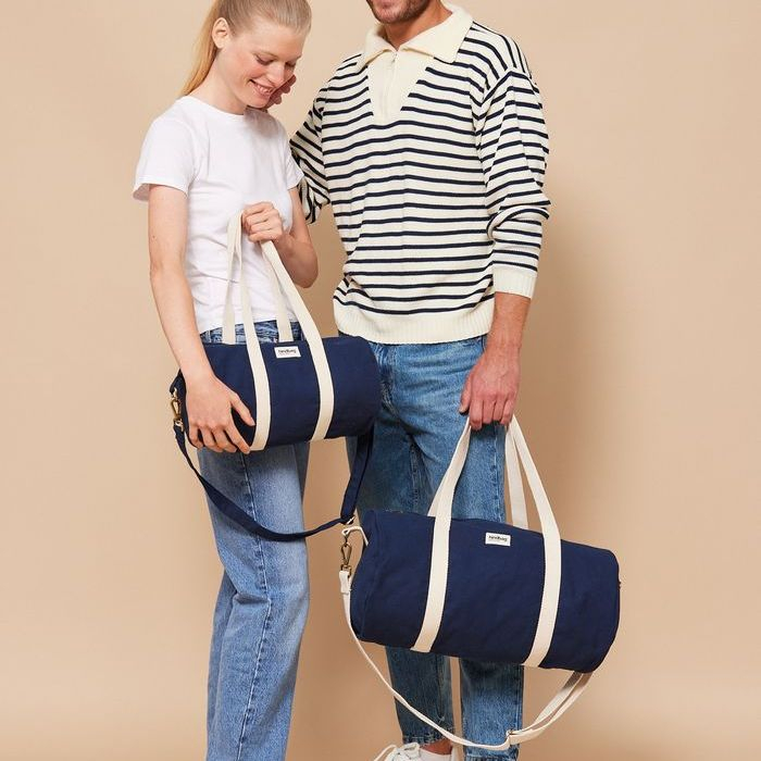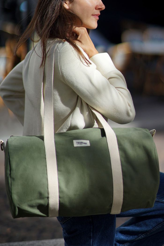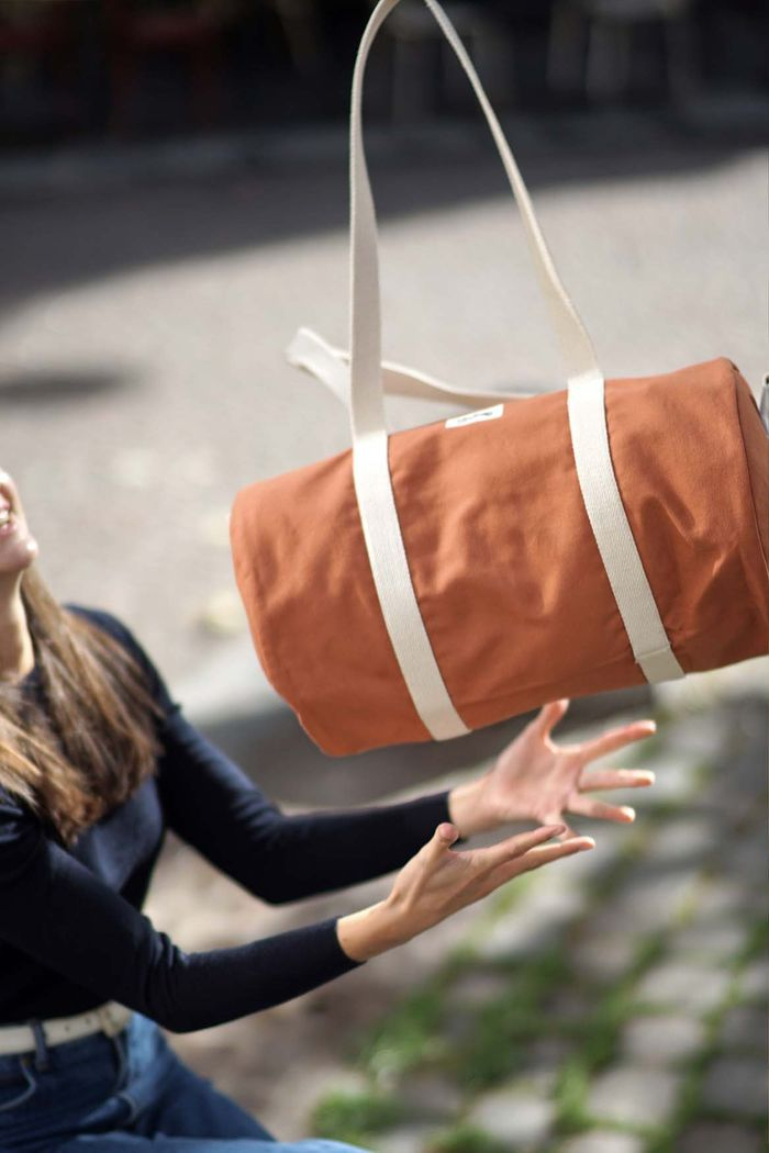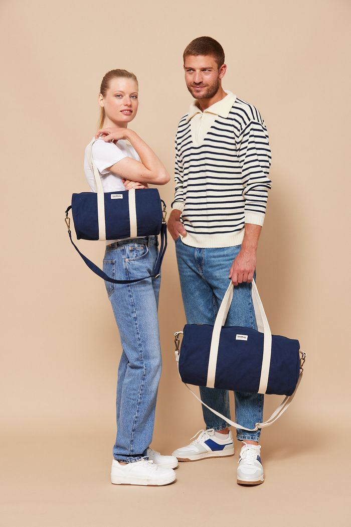 Le sac polochon Simon en coton bio est parfait pour les week-ends ou le sport, avec son grand volume, sa poche intérieure et sa bandoulière réglable.