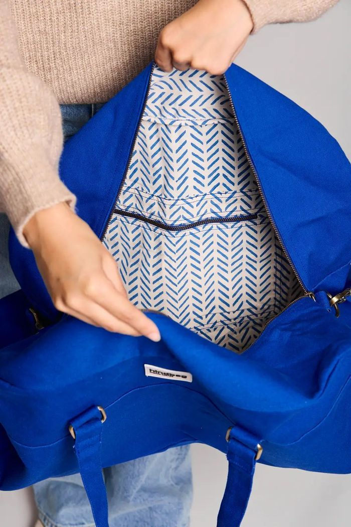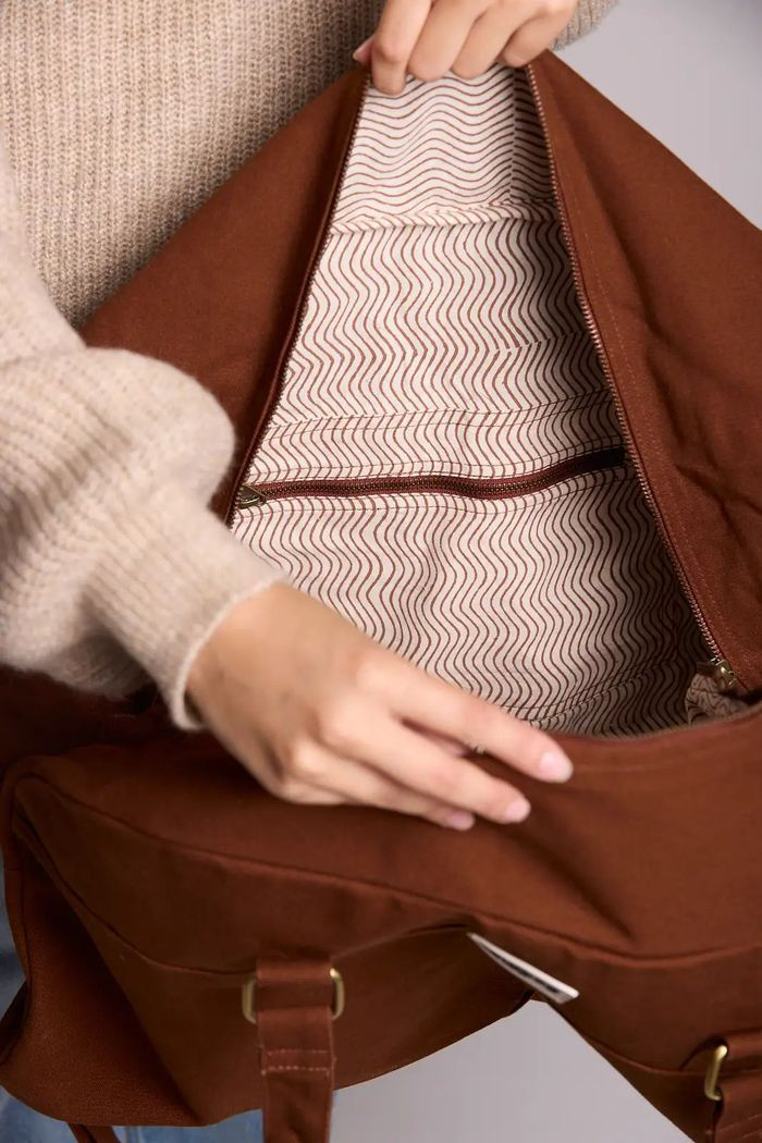 Yves, c’est le grand sac de voyage XL en coton bio, solide et stylé, parfait pour partir en vacances avec toutes vos affaires bien rangées.