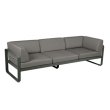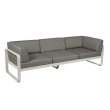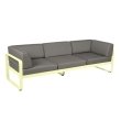 Le canapé Club Bellevie 3 places de Fermob est un meuble de jardin contemporain, résistant et facile à déplacer, avec des coussins d'angle en tissu Sunbrella® déhoussables et lavables en machine. Il peut être personnalisé avec un choix de 22 couleurs pour la structure et 4 couleurs pour les coussins, et être combiné avec d'autres éléments de la tribu Bellevie pour créer un ensemble harmonieux.