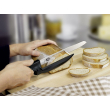 Ce couteau à pain et à viande Victorinox est équipé d'un guide réglable pour que vos tranches de viande ou de pain soient toujours coupées à la même épaisseur. Le guide est réglable pour une épaisseur de 1 à 15 mm.