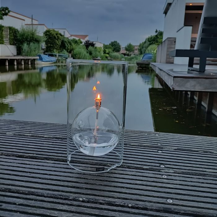 Un coupe-vent élégant pour l'intérieur et l'extérieur. Grâce à la conception du cylindre du pare-vent, il peut être placé à l'extérieur en cas de léger vent.