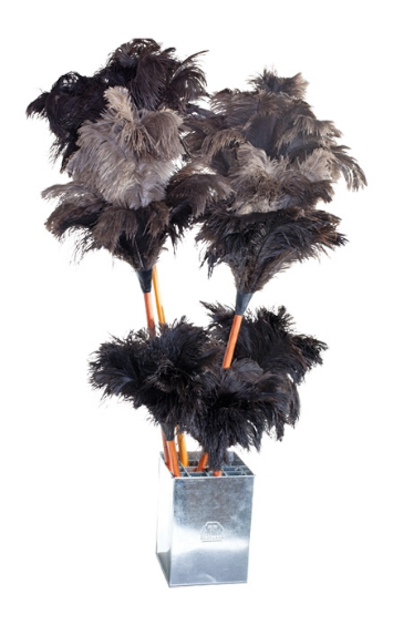 La plume d’autruche est la reine en matière de plumeaux. Chaque plume est naturellement composée, dans sa structure, de nombreuses petites plumes, c’est pourquoi les plumes n’époussettent pas simplement, mais retiennent très bien la poussière.