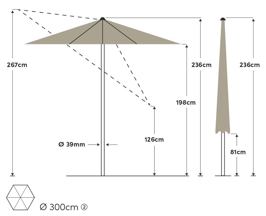 La toile des parasols est déormais vissée aux bouts des baleines : ce qui donne une toile pls tendue et une meilleure résistance dans le temps.