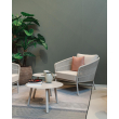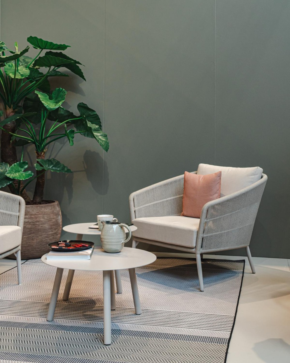La chaise lounge Akari de Vincent Sheppard allie élégance et confort pour une expérience de détente en extérieur exceptionnelle. Sa silhouette délicate et aérienne, caractérisée par des lignes fines et l'utilisation tactile de corde torsadée en polypropylène, repose sur un cadre en aluminium thermolaqué léger, créant une structure élégante qui rehausse l'impression d'espace dans tout environnement extérieur.