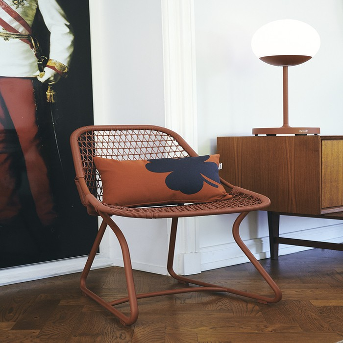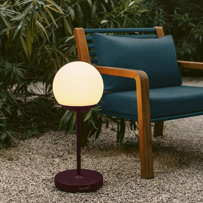 Ontdek de Mooon! H63, de buitenlamp die uw terras en uw woonkamer verlicht. Hij is draadloos en oplaadbaar en past dankzij zijn basis perfect in uw interieur. Bedien hem op afstand via het geïntegreerde Bluetooth-systeem, dat compatibel is met de applicatie "Fermob lighting". Tot 12 uur autonomie, om verschillende lichtsferen in uw tuin te creëren.