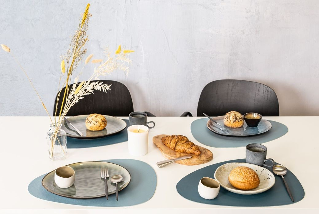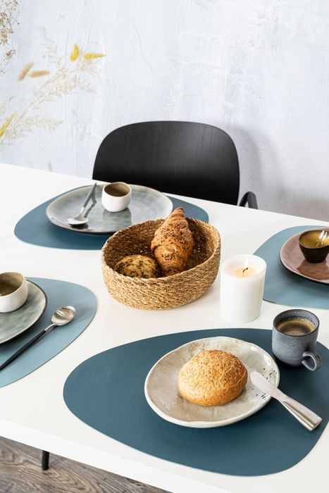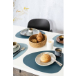 Imitatieleren placemats in zeer elegante kleuren. Het grote voordeel is dat ze heel gemakkelijk te onderhouden zijn: was ze in zeepwater, spoel ze af en droog ze.