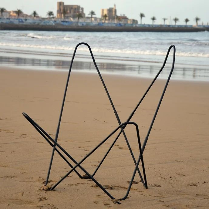 AA Stoelframe van 12 mm dik staaldraad, gecoat met matzwarte epoxyverf of 316L marine roestvrij staal.