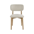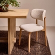 De Hazel eetkamerstoel! Hazel is gemaakt van eikenhout en bekleed met een luxe bouclé stof. De stoel combineert stevigheid en comfort.