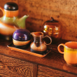 Elk stuk in deze collectie - van aardetinten kopjes en schotels tot originele suikerpotten en melkkannen, en originele koffiekannen
