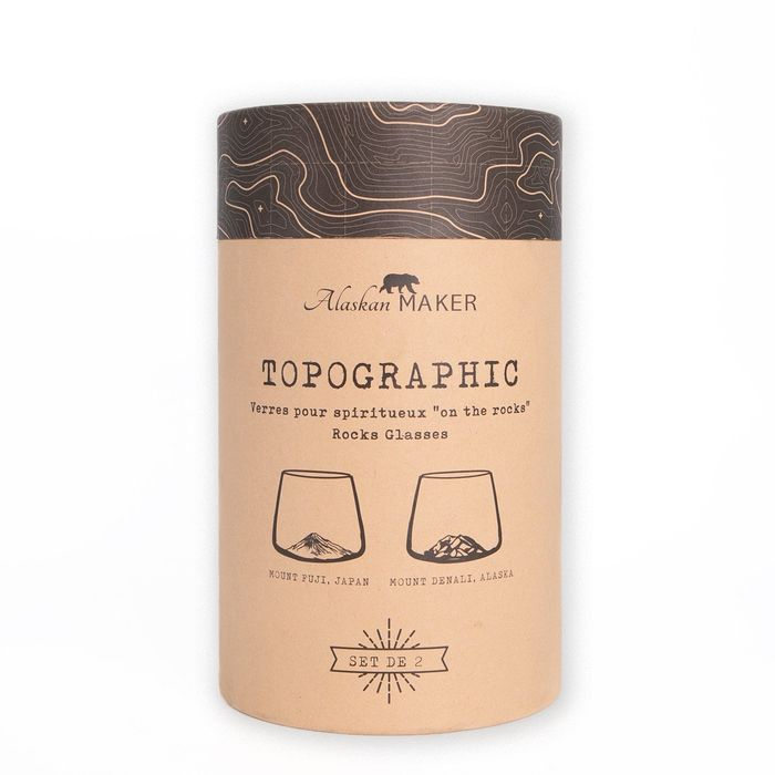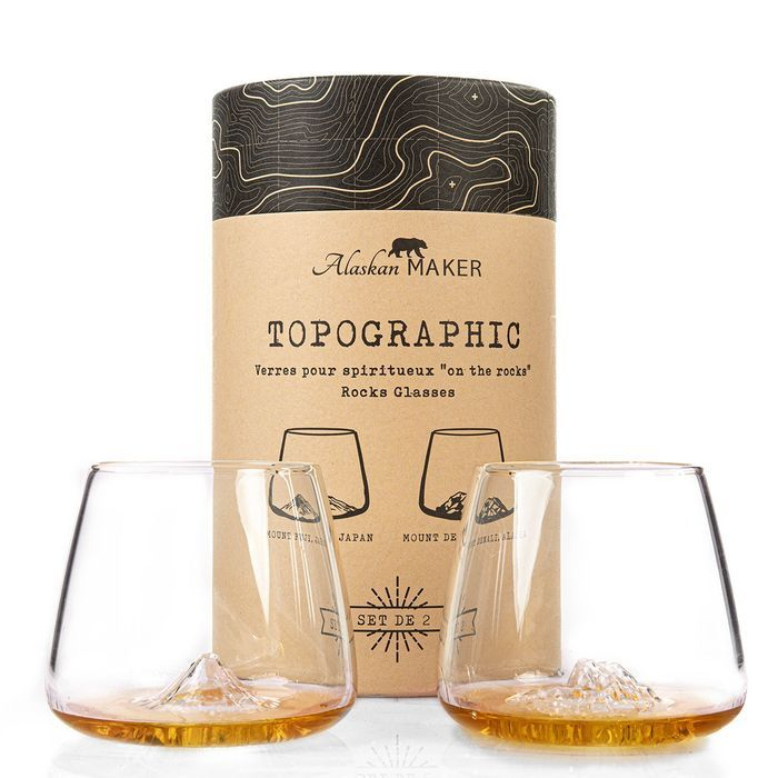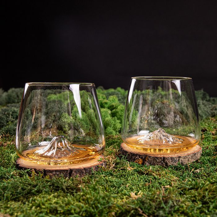 Een mooie geschenkdoos bevat 2 whiskyglazen met verschillende bergen.