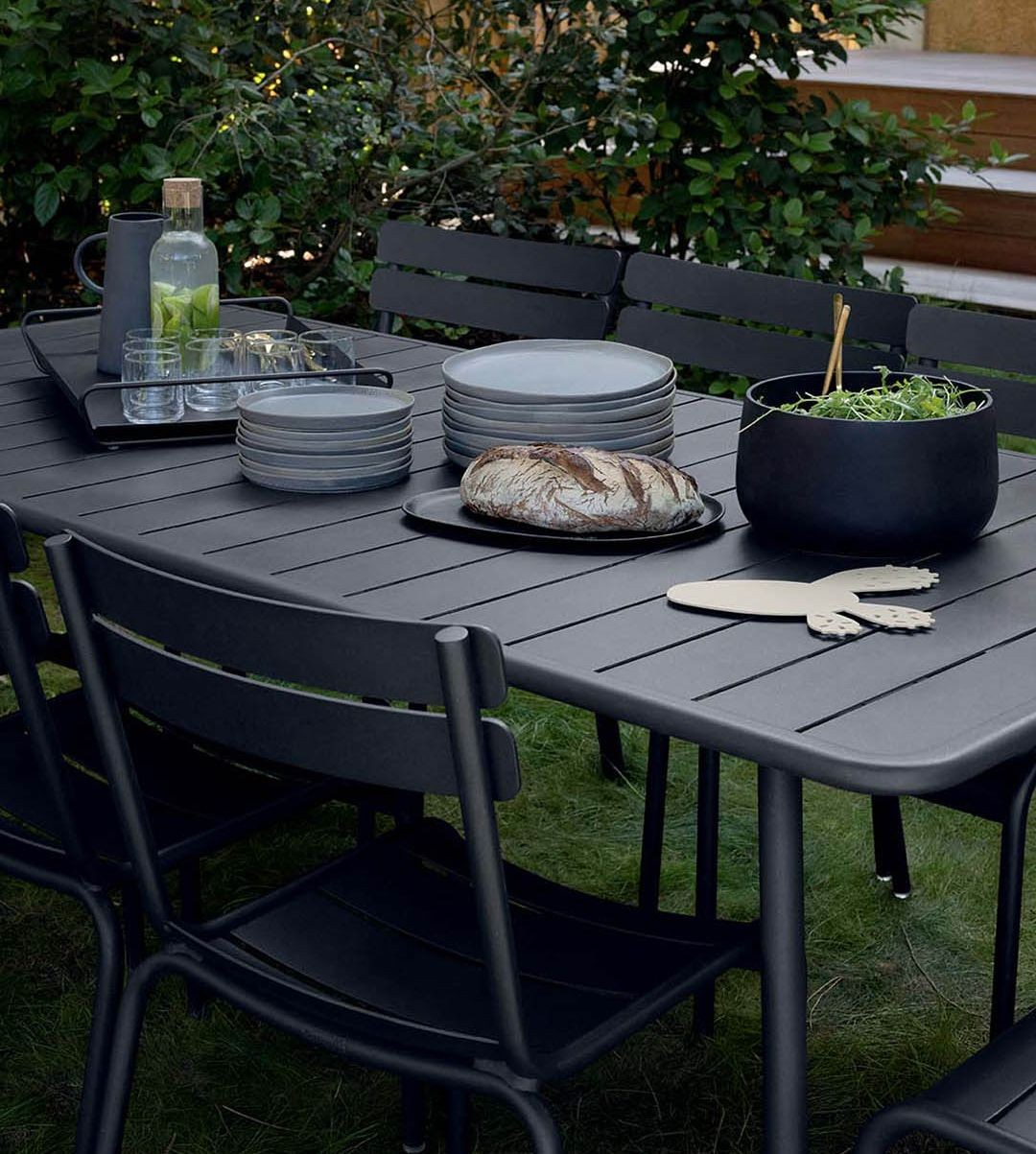 Het gamma tuinmeubelen Luxemburg van Fermob is gemaakt van aluminium, voor een maximum aan lichtheid en weerstand.