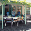 Deze tuintafel van 207x100cm biedt plaats aan 8 tot 10 personen.