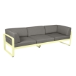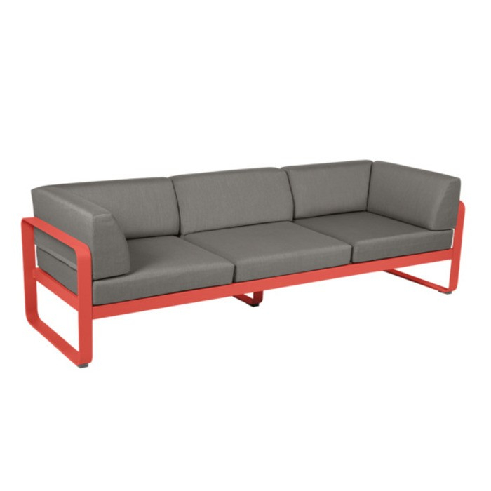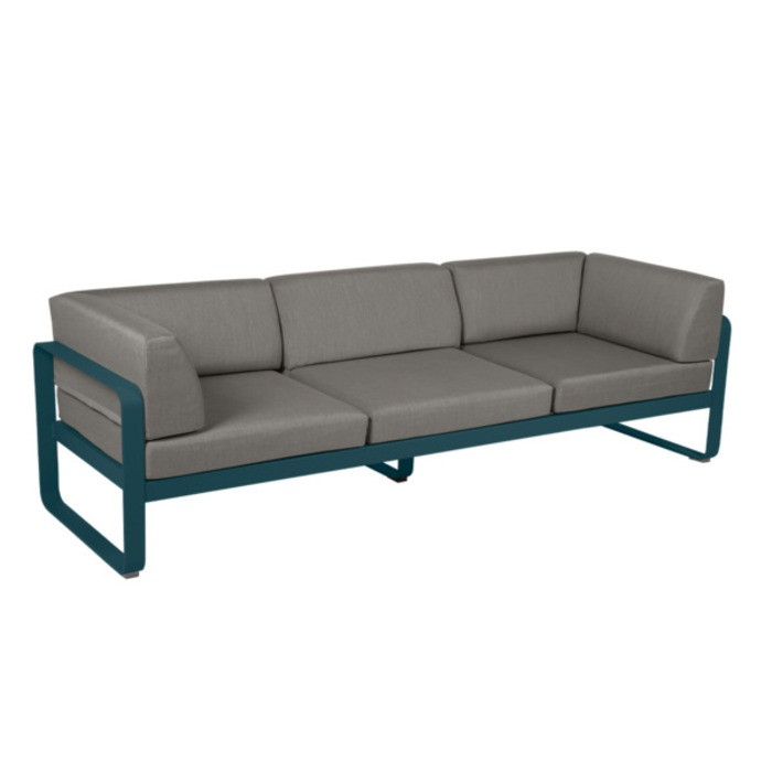 De Bellevie 3-zits Club sofa van Fermob is een eigentijds, duurzaam en gemakkelijk te verplaatsen tuinmeubel, met afneembare en machinewasbare Sunbrella® stoffen hoekkussens. Hij kan worden aangepast met een keuze uit 22 kleuren voor het frame en 4 kleuren voor de kussens, en kan worden gecombineerd met andere Bellevie items om een harmonieus geheel te creëren.