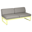 De 2-zits centrale module uit de Bellevie-collectie van Fermob is een praktisch, aanpasbaar element voor het creëren van een unieke loungeplek in uw tuin of op uw terras. De aluminium basis is weerbestendig, terwijl de kussens bedekt zijn met Sunbrella® stof, die vlek- en UV-bestendig is.