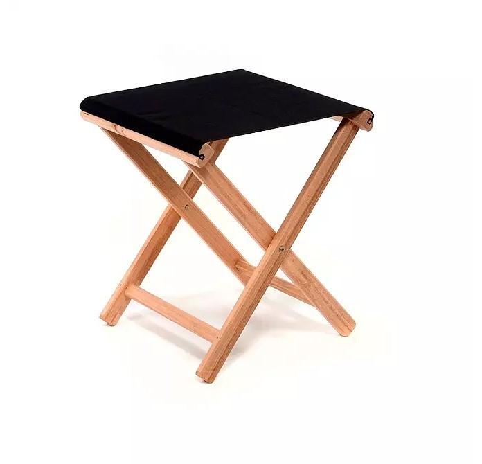 De inklapbaar krukje in massieve eucalyptus van Europese makelij.