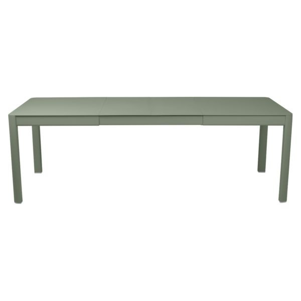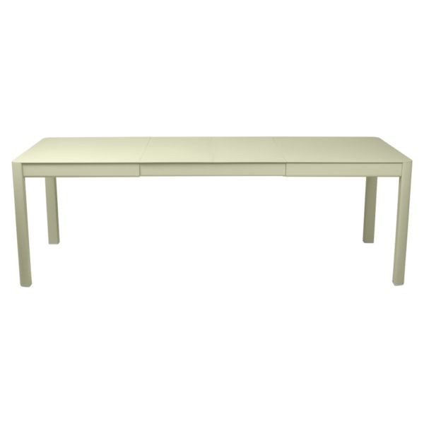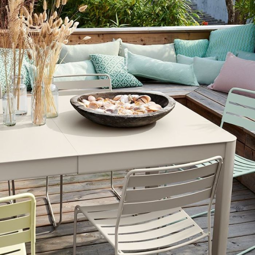 De Ribambelle tafel van Fermob is zowel licht als robuust dankzij zijn aluminium structuur en bovenblad, maar past zich vooral aan het aantal gasten aan dankzij zijn 2 onzichtbare verlengstukken!