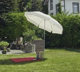 De Siesta parasol van Suncomfort by Glatz is de ultieme strandparasol: 1) Hij heeft een spitse punt, zodat hij gemakkelijk in zand of aarde kan worden geduwd. 2) Het is een kwaliteitsstrandparasol: het doek filtert 98% van de UV-stralen. 3) Hij is gemakkelijk te vervoeren met een draagtas. 4) Hij is in hoogte verstelbaar