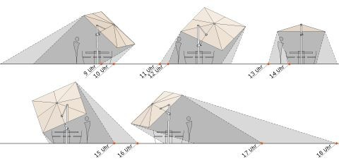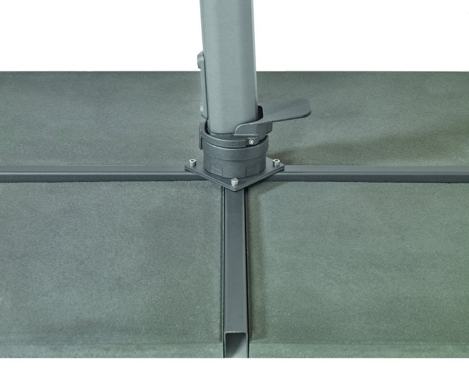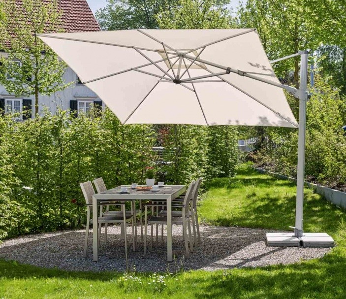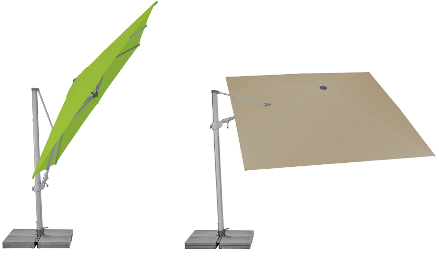 De Varioflex parasol is een zweefparasol die van voor naar achter EN van links naar rechts kan worden gekanteld: daarom is deze parasol echt uniek.