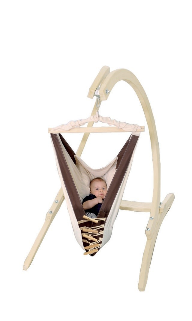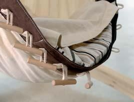 Kangoo, een luxueuze hangmatwieg, vereist slechts één ophangpunt. In de Kangoo is het mogelijk om een zacht en pluizig Sunny-matras te leggen dat kan worden verwijderd en gewassen. Voor volledige veiligheid voor de baby en een gevoel van absoluut welzijn kan de Kangoo aan de uiteinden worden dichtgeknoopt.