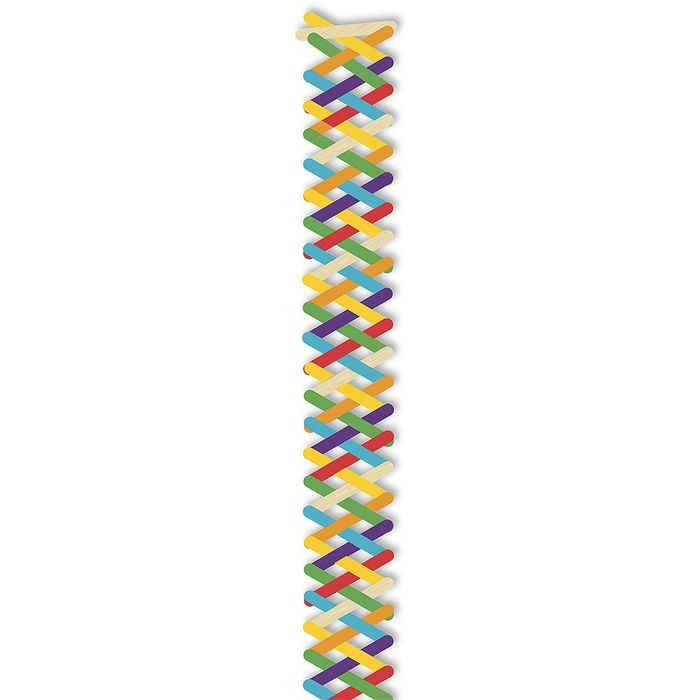 Alleen of in groepen, monteer de stukken met behulp van het sjabloon. De houten stokken stijgen op als een slang en vliegen alle kanten op.