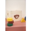 ✔ Zoek het juiste gat om het dier of de houten vorm in te steken. ✔ Inhoud van de doos: een houten kist met gaten, een deksel met gaten, 4 dieren en 12 blokken. ✔ Vanaf 18 maanden.