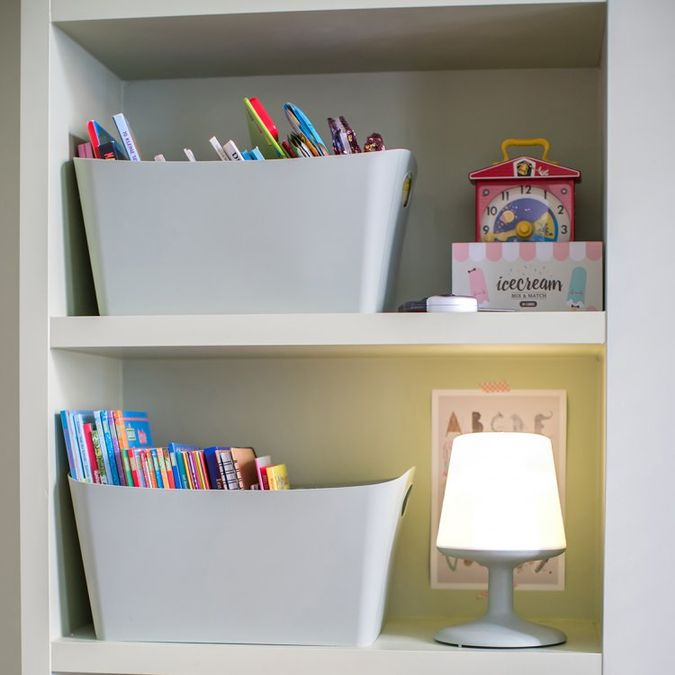 Met zijn rechthoekige vorm is hij perfect voor het opbergen van bouwstenen voor kinderen, kantoorbenodigdheden en omvangrijke schoonheidsproducten.