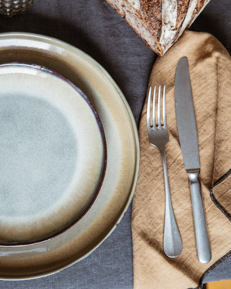 De Nicky service van Pomax is resoluut in de lucht van de tijd, ambachtelijke stijl, warme kleuren