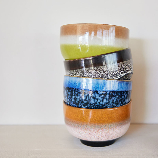 Ontdek onze nieuwe collectie 70s keramiek, met handgemaakte afwerkingen en kleurlagen voor een funky touch in je kasten. En voor een unieke ervaring trakteer je jezelf op onze groovy noedelkommen in een 4-delige set. Geef je keuken een vleugje retrostijl!