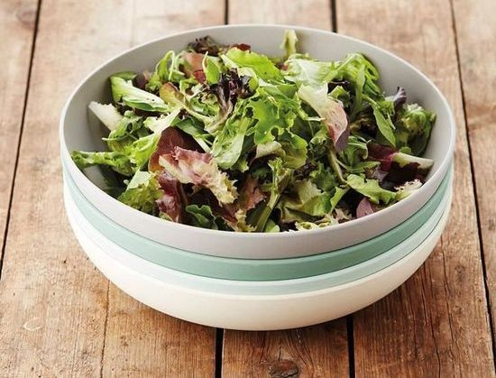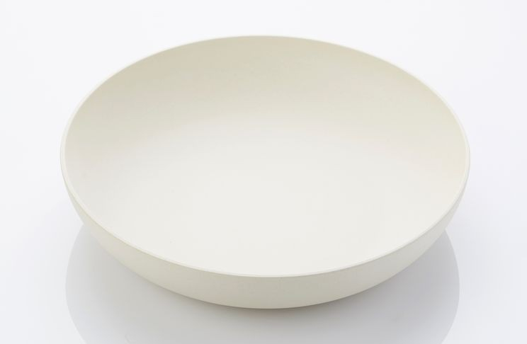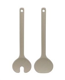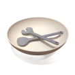 Design en duurzaamheid komen samen in deze prachtige saladeschaal van bamboevezel met bijpassend bestek.