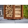 Quarubox maakt het makkelijk om hout voor je buitenhaard op te slaan en kan ook dienen als bijzettafel. Quarubox is gemakkelijk te verplaatsen dankzij de stevige wielen.