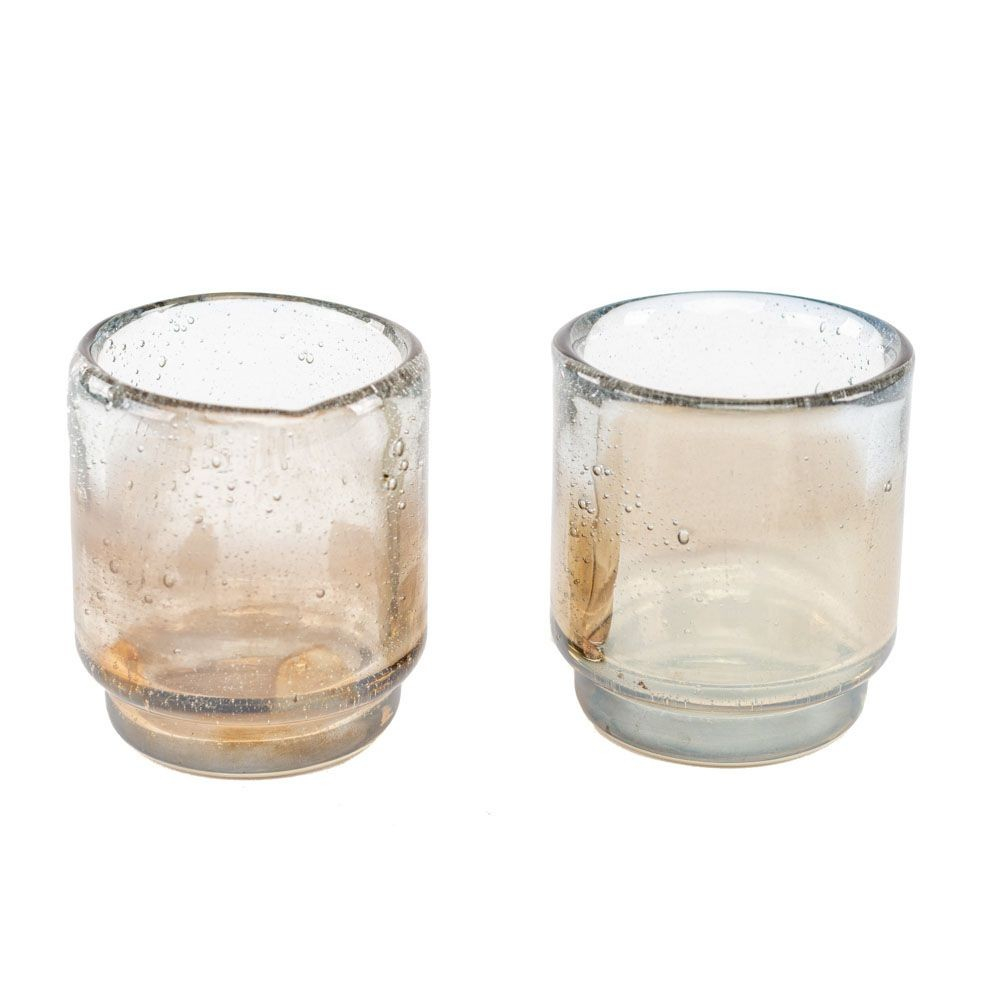 Verkrijgbaar in 2 maten, de Chicago set bestaat uit 2 kaarshouders: een in transparante gouden tinten en de andere in transparante grijstinten.