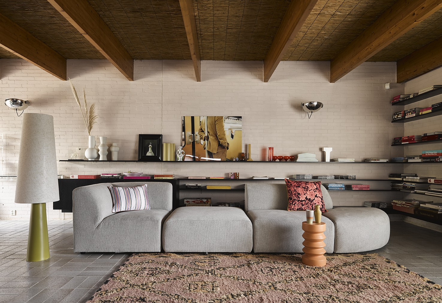 Deze hocker kan worden gebruikt als salontafel of als onderdeel van de modulaire Jax-bank van HK Living.
