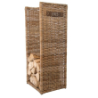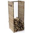 Deze grijze rotanmand is ideaal voor het verticaal opslaan van uw brandhout: het bespaart veel ruimte.
