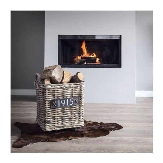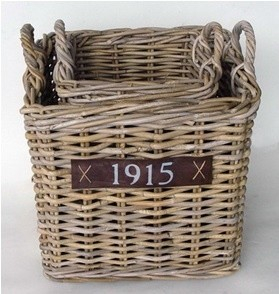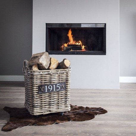 Vierkant grijze rotan mand handvat en wieltjes