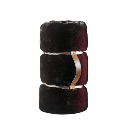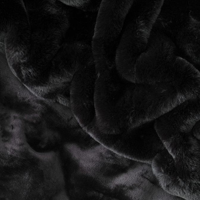 Het is een tweekleurige plaid: de ene zijde imiteert het zachte haar van een zwarte panter en de andere zijde is glad.
